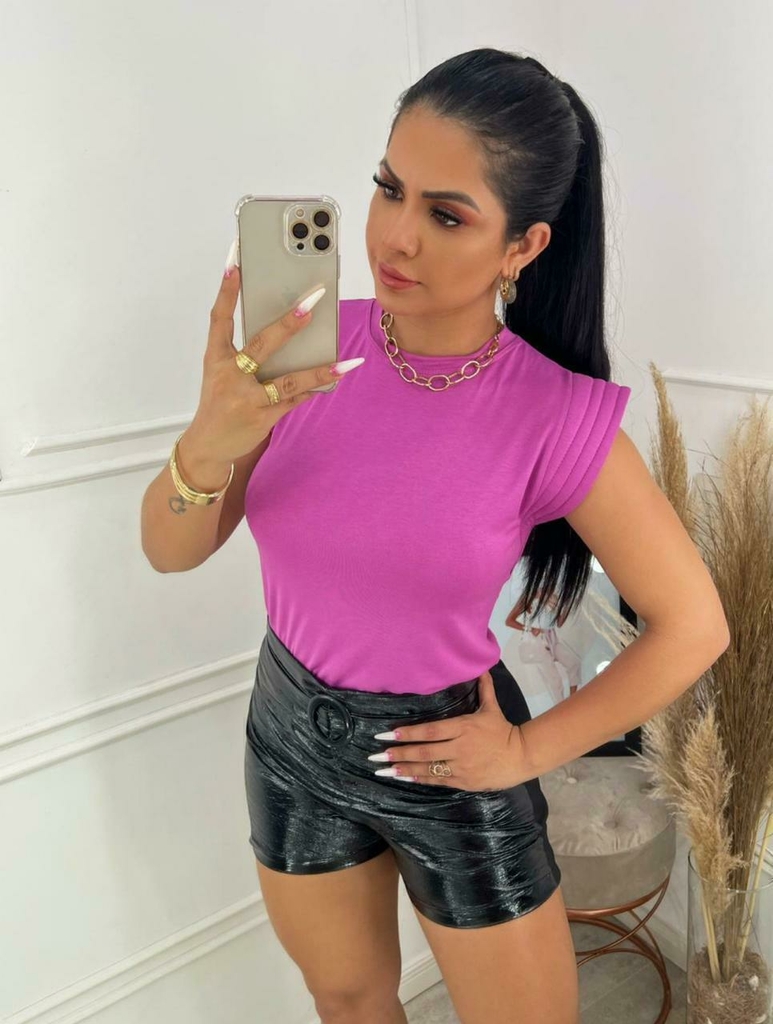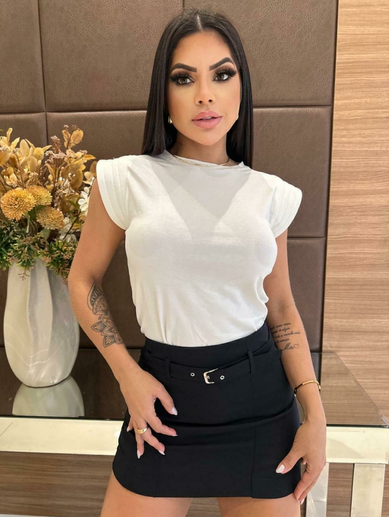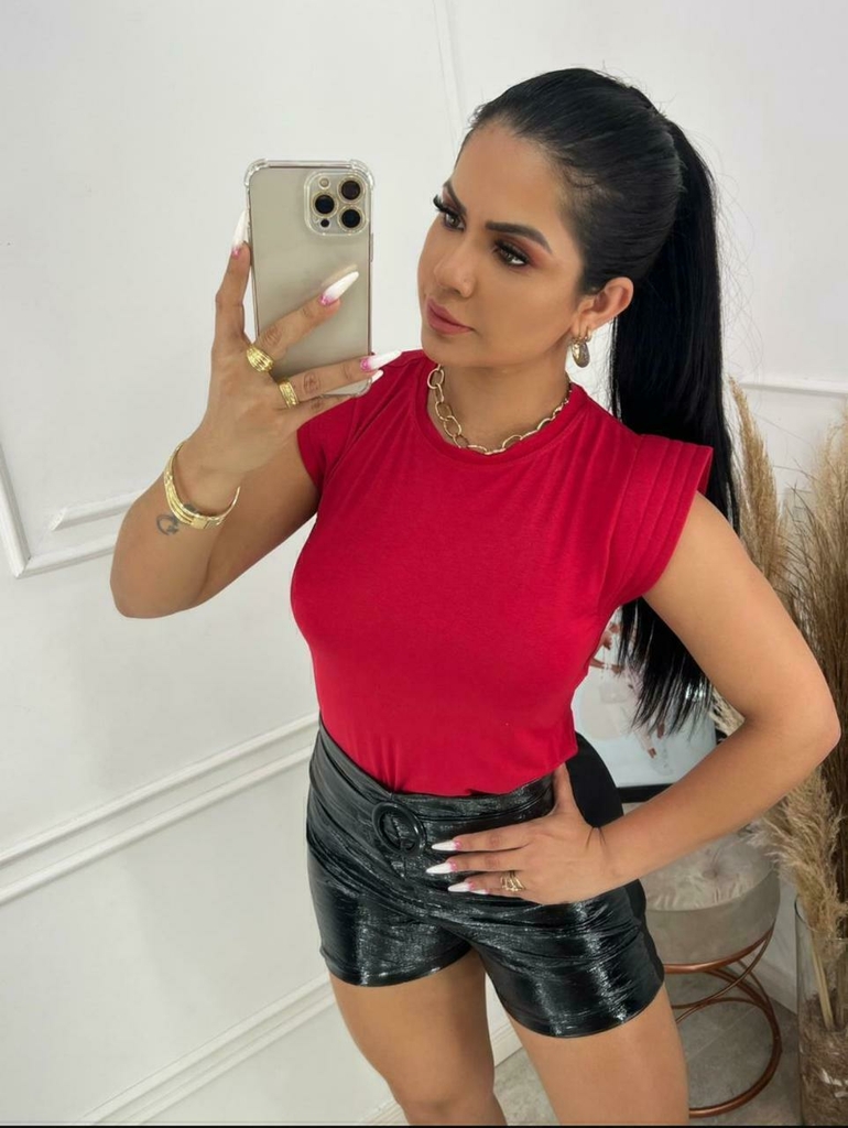 As cavas levemente deslocadas e o decote redondo oferecem um toque moderno, enquanto as ombreiras embutidas trazem um detalhe exclusivo que valoriza a silhueta. Versátil, essa blusa combina perfeitamente com diferentes looks, desde um visual casual até uma produção mais elaborada para eventos.