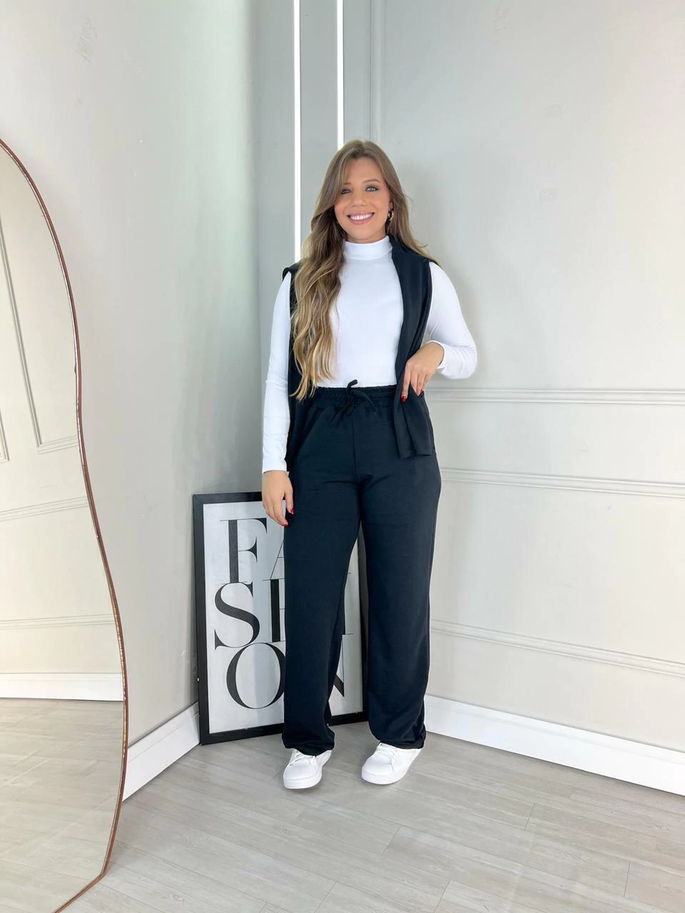 Confeccionado em moletinho de extrema qualidade e bem estruturado, o conjunto é macio e quentinho, ideal para manter você confortável em qualquer ocasião. O elástico na cintura garante ajuste perfeito e liberdade de movimento, valorizando sua silhueta com elegância e conforto.