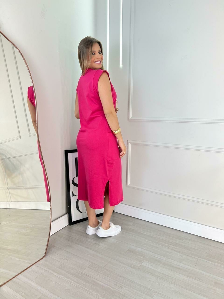 Com seu corte midi, esse vestido valoriza a silhueta, tornando-se uma escolha versátil que combina perfeitamente com tênis para um look casual ou com sandálias para um evento mais formal.